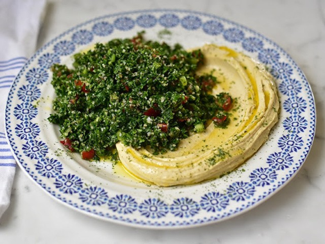 Serve with tzatziki and hummus.